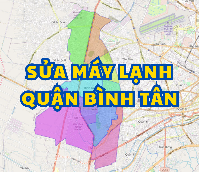 Điện Máy Bách Khoa nhận sửa máy lạnh tất cả các phường quận Bình Tân, bao gồm: An Lạc, An Lạc A, Bình Hưng Hòa, Bình Hưng Hòa A, Bình Hưng Hòa B, Bình Trị Đông, Bình Trị Đông A, Bình Trị Đông B, Tân Tạo, Tân Tạo A. Chúng tôi cũng nhận sửa máy lạnh tất cả các tuyến đường phố quận Bình Tân, Sài Gòn: